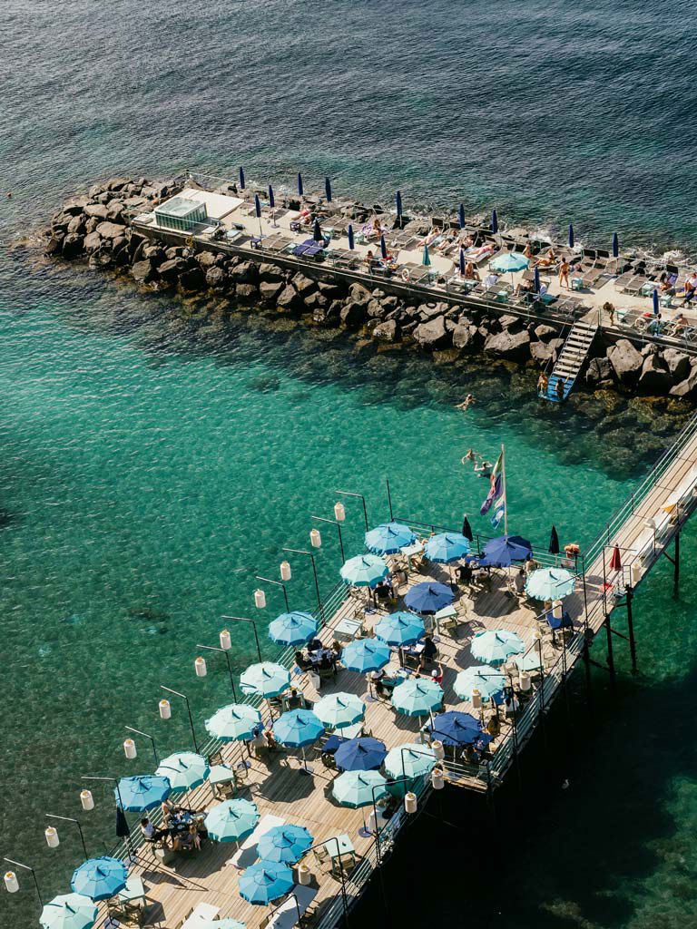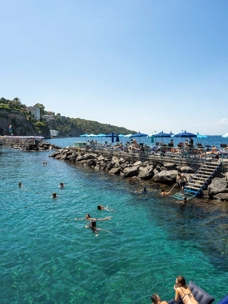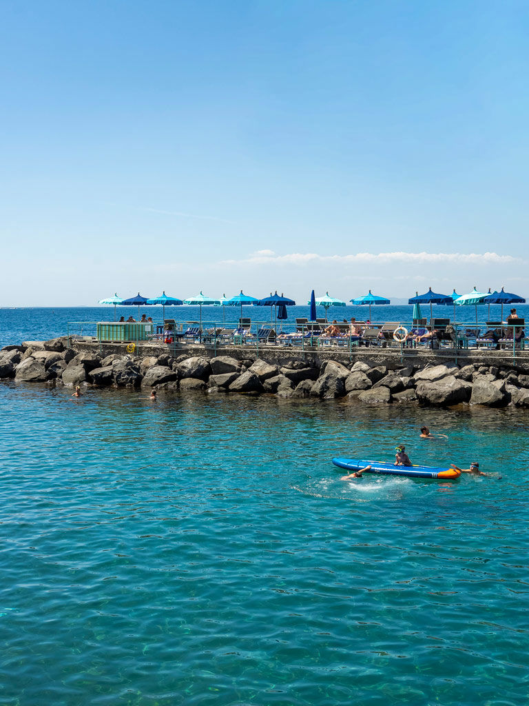 In the heart of Marina Piccola, Marameo Beach Club offers a privileged view of the sea of Sorrento, with the silhouette of Vesuvius in the background. The large solarium and direct access to the beach make it the ideal place to relax in total comfort and elegance.